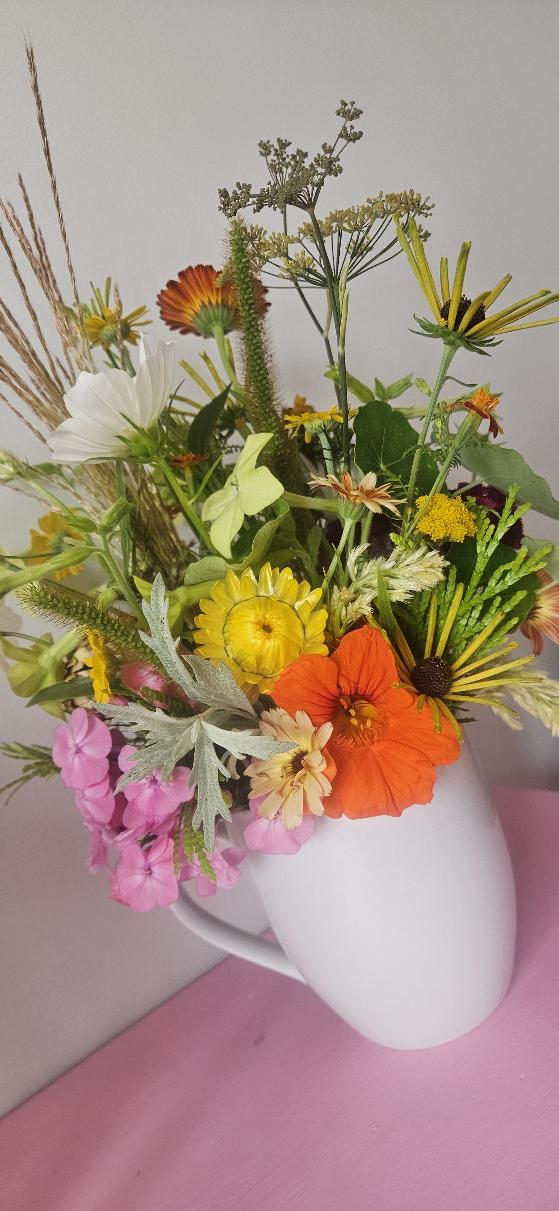 Our mission is rooted in a commitment to sustainability, using only what we cultivate ourselves, responsibly harvesting from our land, or sourcing locally. We embrace organic practices and steer clear of herbicides and pesticides. Our farm thrives on eco-friendly principles, utilizing second-hand and repurposed materials, creating arrangements free from floral foam, and continually seeking ways to minimize waste.